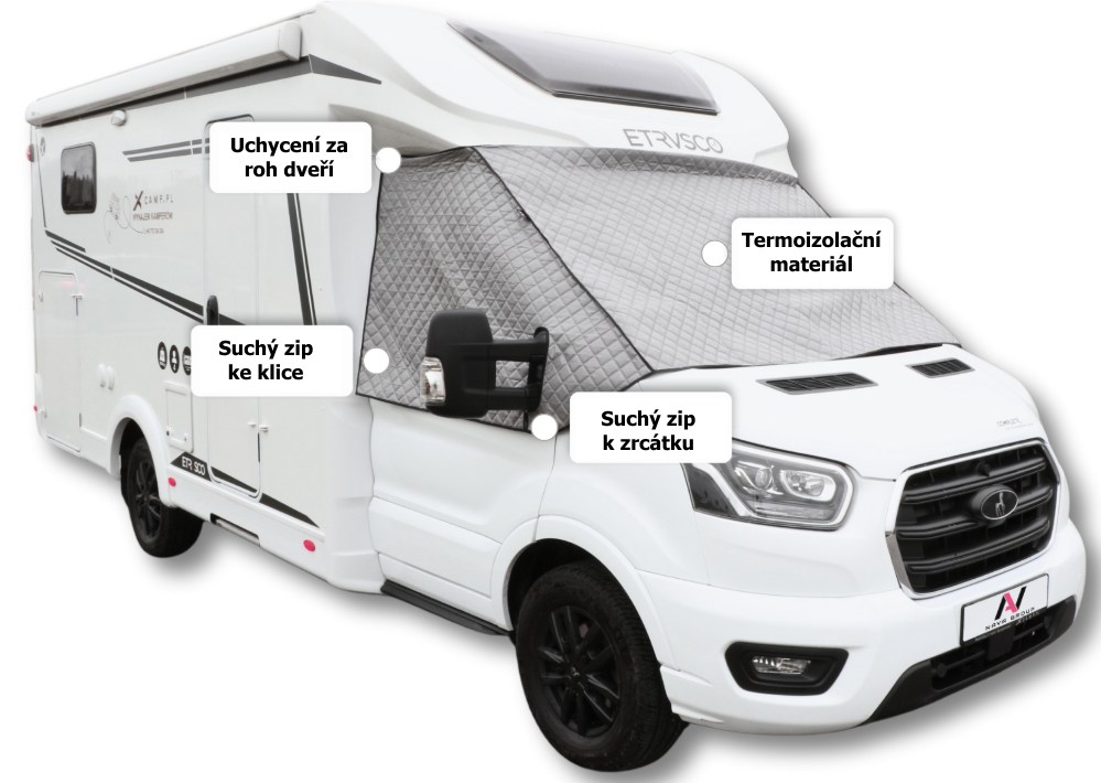 - Dobré přizpůsobení: Plachta dobře přilne ke karoserii a zajišťuje maximální tepelnou izolaci. A to i pro plně intergrovaná vozidla se zrcátky nahořei.