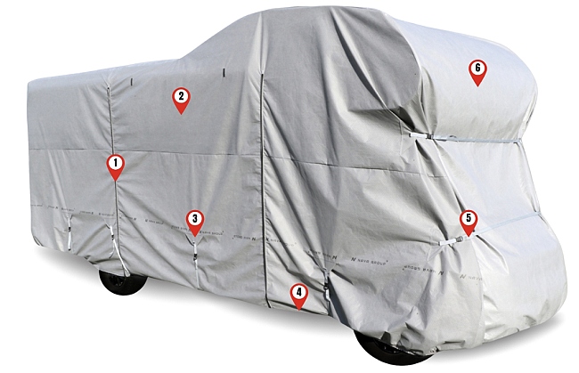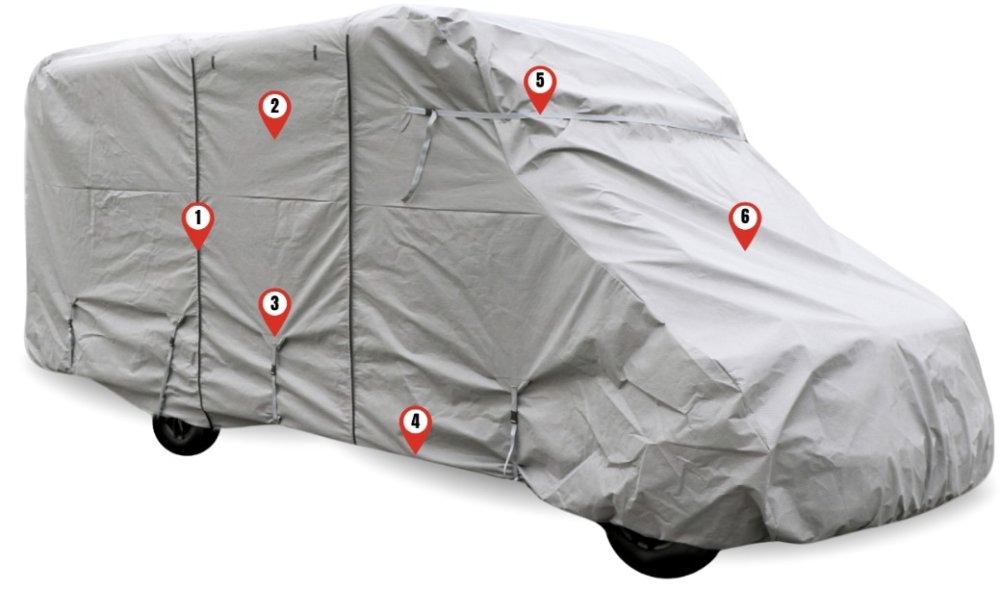 Plachta na obytný vůz je navržena tak, aby chránil vozidlo před škodlivými vnějšími vlivy. Vyrobeno v EU z odolného a voděodolného čtyřvrstvého polypropylenového evropského materiálu odolného vůči povětrnostním podmínkám. Díky speciálním vlastnostem materiálu je plachta odolná vůči plísním a oděru a jeho prodyšná struktura zabraňuje hromadění vlhkosti uvnitř. Plachta má další jemnou vnitřní vrstvu, která je bezpečná pro lak. Díky vestavěnému filtru proti slunečnímu záření garantujeme dlouhodobé používání plachty, aniž by materiál zkřehnul. Plachta je vybavena zipy, které umožňují přístup do interiéru vozidla bez nutnosti sundávat celou plachtu. Nastavitelné, pevné stabilizační popruhy a elastické okraje zajišťují, že plachta dobře přilne k vozidlu a chrání ji před silným větrem. Má šedou barvu, což omezuje zahřívání materiálu a interiéru vozidla.