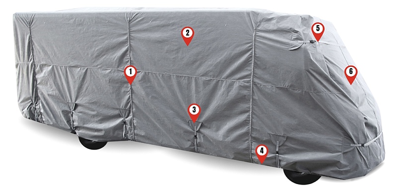Plachta na obytný vůz je navržena tak, aby chránil vozidlo před škodlivými vnějšími vlivy. Vyrobeno v EU z odolného a voděodolného čtyřvrstvého polypropylenového evropského materiálu odolného vůči povětrnostním podmínkám. Díky speciálním vlastnostem materiálu je plachta odolná vůči plísním a oděru a jeho prodyšná struktura zabraňuje hromadění vlhkosti uvnitř. Plachta má další jemnou vnitřní vrstvu, která je bezpečná pro lak. Díky vestavěnému filtru proti slunečnímu záření garantujeme dlouhodobé používání plachty, aniž by materiál zkřehnul. Plachta je vybavena zipy, které umožňují přístup do interiéru vozidla bez nutnosti sundávat celou plachtu. Nastavitelné, pevné stabilizační popruhy a elastické okraje zajišťují, že plachta dobře přilne k vozidlu a chrání ji před silným větrem. Má šedou barvu, což omezuje zahřívání materiálu a interiéru vozidla.
